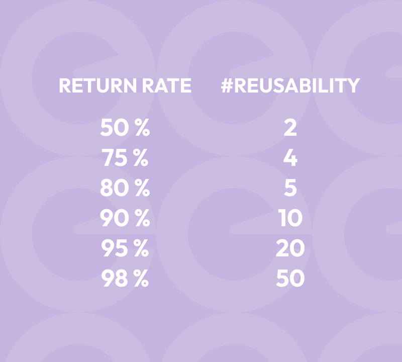 Produce once, reuse maximally = one-time production costs, then "only" collection and service costs. This is why the return rate (Rq) is not only ecologically but also economically decisive: the higher the return rate, the more productive the packaging. The faster the cycle, the faster the renewed billing of the service.