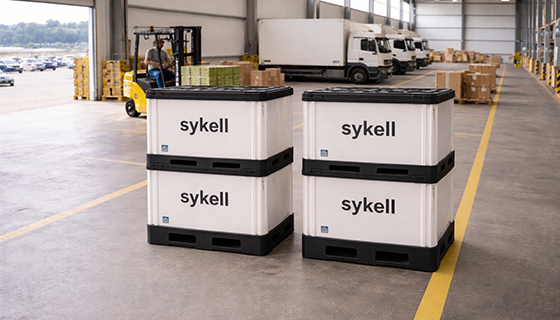 Space-saving collection of all reusable plastic packaging compatible with system design, powered by Circular ERP.