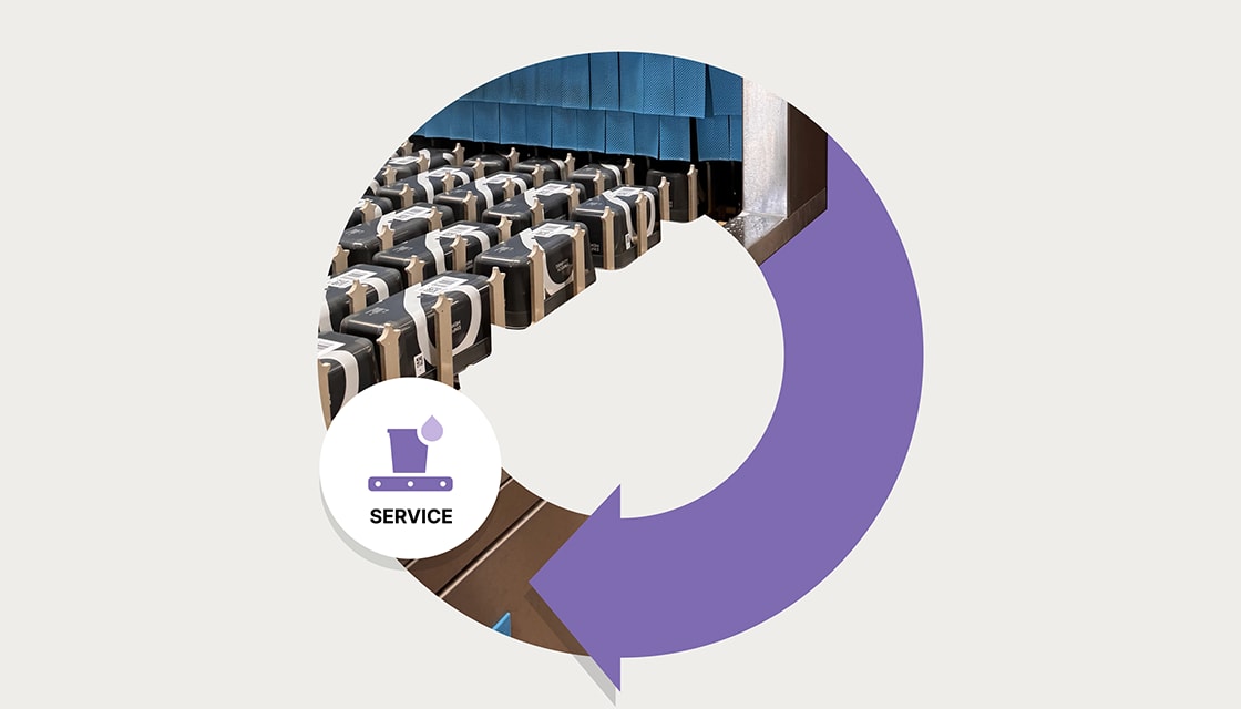 After >35 cycles, packaging is sorted out and processed into recyclates for new reusable packaging.